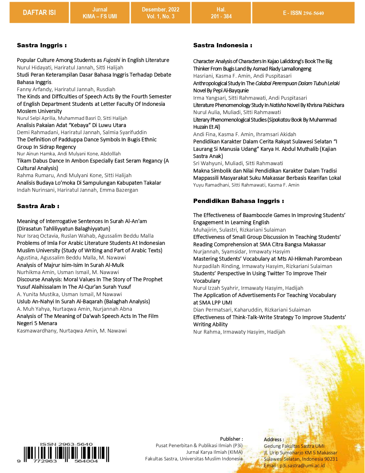Vol. 1 No. 3 (2022): Karya Ilmiah Mahasiswa (KIMA)