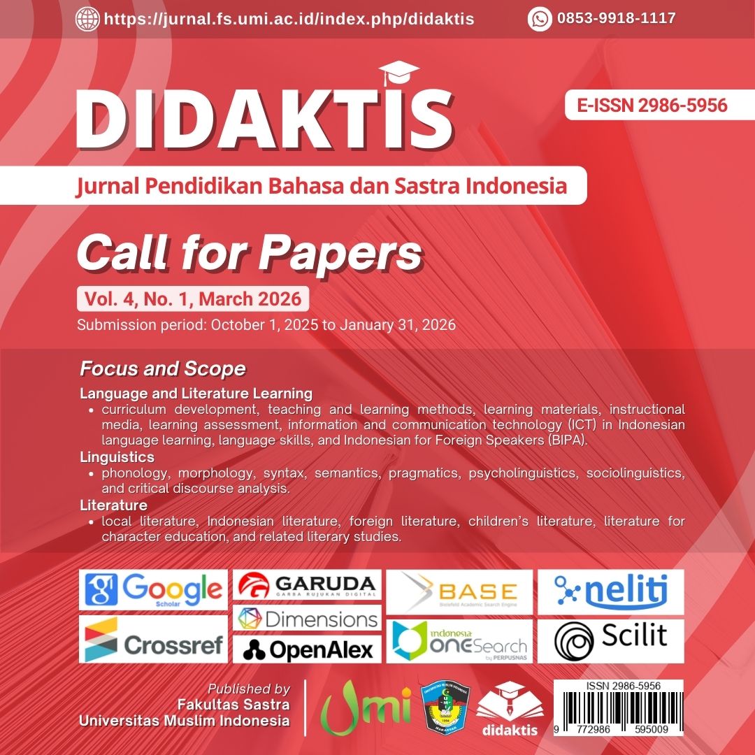 Prospective authors should submit the manuscript only by submission system at: https://jurnal.fs.umi.ac.id/index.php/didaktis. We do not accept any submissions via email at all.